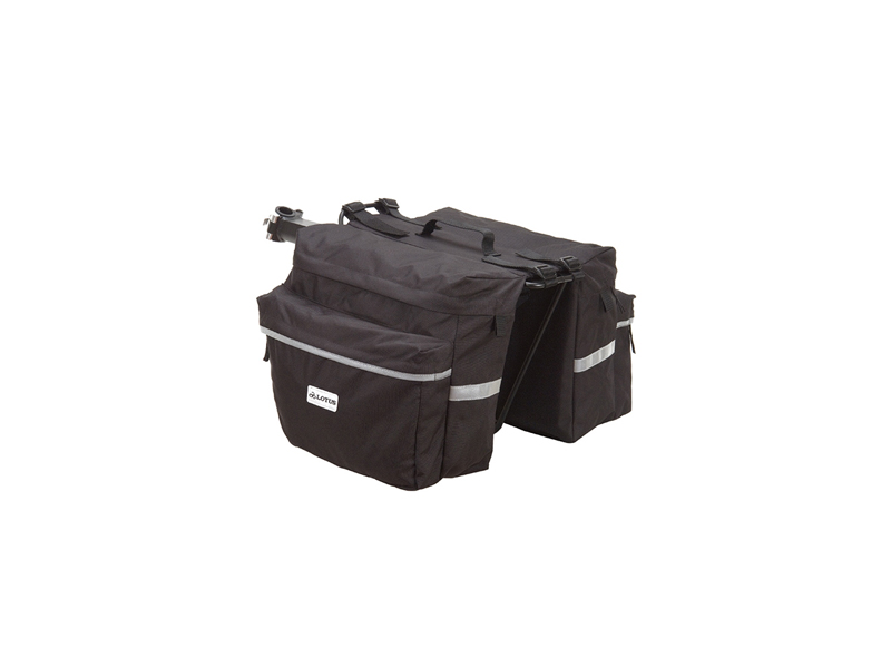 一體成型設計的馬鞍袋,兩個拉鍊主袋前皆有一拉鍊前袋,中間另有提把,可以讓使用者在不使用將馬鞍袋掛載在貨架時當做手提包使用。大容量設計可提供使用者大量儲存物品的可能性。